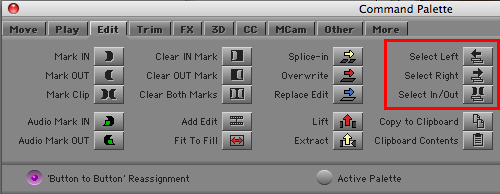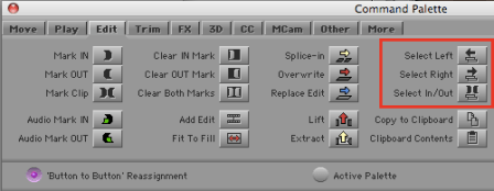 First and foremost, it allows you to select all clips to the right or left of the blue cursor, or all clips between marks. This makes it trivially easy to open up space in the middle of a complex, overlapped timeline. Just select all tracks, hit the new “select right” button and drag everything to the right. Voila, you’ve got a nice empty space in your timeline, without cutting up any clips or doing any cleanup work. Final Cut has had a similar feature for a long time, but it’s a valuable and nicely implemented addition to the MC.