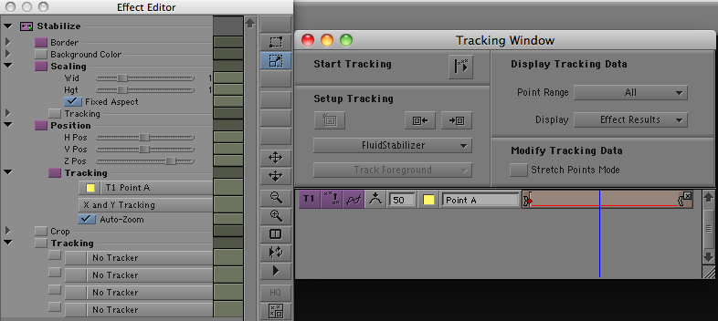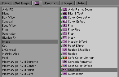 Media Composer has included a very powerful stabilize effect for years now, but putting all that power to work was not easy. You needed significant training to get up to speed with it. (I posted a introductory video back in ’08 that should help. It’s here.) But now, with version 5, the stabilize effect is one-button simple. Yes, there are still lots of controls, but for most purposes, all you need to do is drag the effect to a clip and watch while it automatically tracks and stabilizes the shot, blowing it up as needed. You don’t need to identify a location for a tracker because the effect analyzes motion across the entire image.
