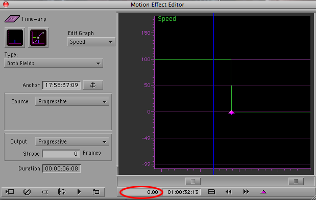 That’s all there is to it. Keep in mind that this is a real-time effect. It typically won’t require rendering, and you can overlay other effects on top of it. Because it’s real-time, it’s easy to change. If you prefer a different frame, just open the Motion Effect Editor and move your keyframe. (To ensure that you don’t change the speed, hold down Option and Shift while you drag.)