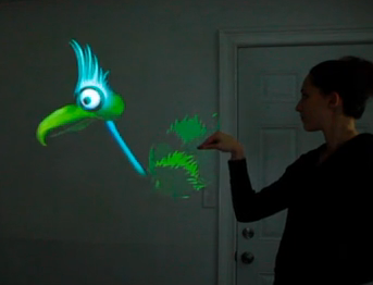 After some initial resistance, Microsoft is now permitting hackers to create novel applications for its Kinect hands-free game controller, and less than three weeks after the device’s release, some fascinating projects are already starting to appear. An article in today’s NY Times lays out some of the early ideas. This video gives you a small sense of what’s possible. The author, Oliver Kreylos, has extracted images from two of the device’s cameras — the depth image and the color image, as he calls them, and uses them to reconstruct video that can be moved and reshaped in 3D space. In this video, Mehmet Akten uses the box to do some crude in-the-air drawing with his hands. At in this one, designers Theo Watson and Emily Gobeille use the device (apparently connected to a Mac) to make a projected puppet track hand movements. Not bad for a couple of short weeks! This technology may or may not be precise enough for useful work, but I’d sure like to see somebody try connecting it to an editing interface.